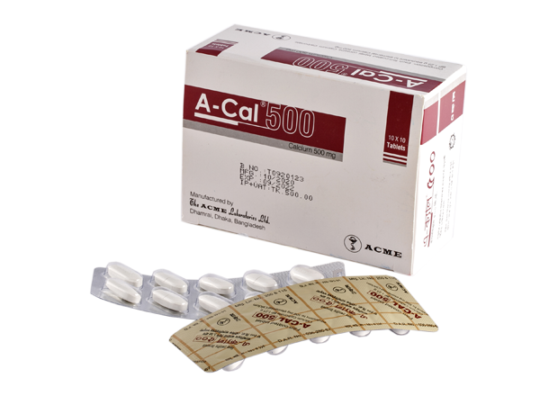 A-Cal 500 : Calcium Carbonate BP 1.25 g equivalent to 500 mg elemental Calcium.