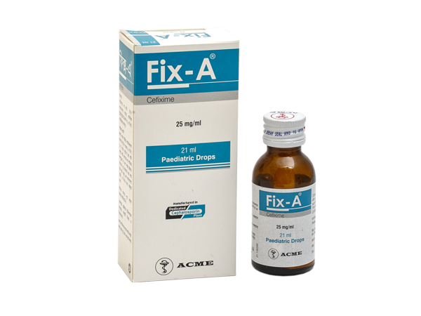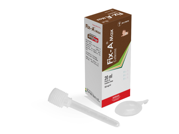 Powder for Paediatric Drops (Fix-A® Max): Each ml contains Cefixime Trihydrate USP equivalent to Cefixime 100 mg after reconstitution.