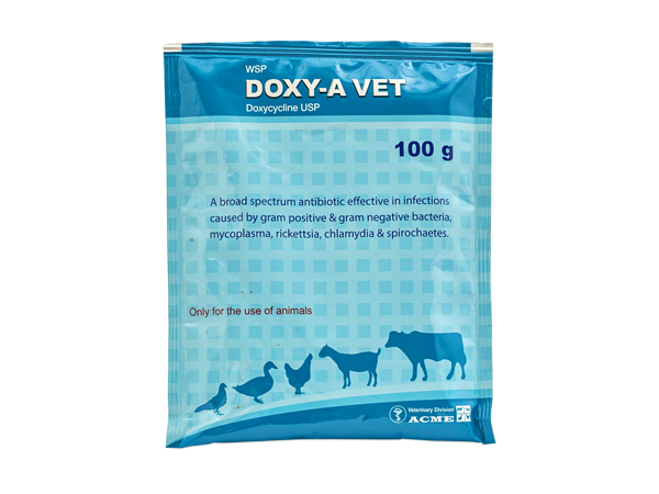 Doxy-A Vet 100g WSP: Each g powder contains Doxycycline USP 100 mg (as Doxycycline Hyclate).