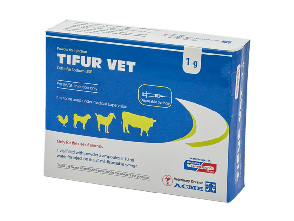 Tifur Vet 1 g: Each vial contains Ceftiofur Sodium INN sterile powder equivalent to1 g Ceftiofur.