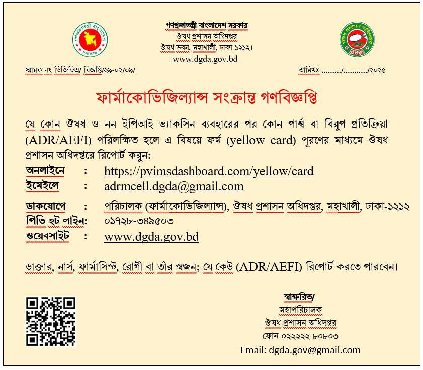 This public notice will raise awareness among the doctors, nurses, pharmacists, patients and their relatives about the importance of reporting drug reactions, which will further strengthen the country's pharmacovigilance system.