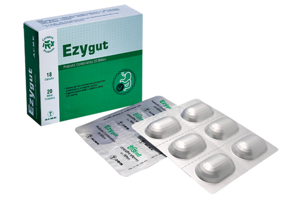 Ezygut, Capsule: Each capsule contains combination of 20 billion organisms of Bifidobacterium Lactis Bl-04, Bifidobacterium Lactis Bi-07, Lactobacillus Acidophilus NCFM and Lactobacillus Paracasei Lpc-37