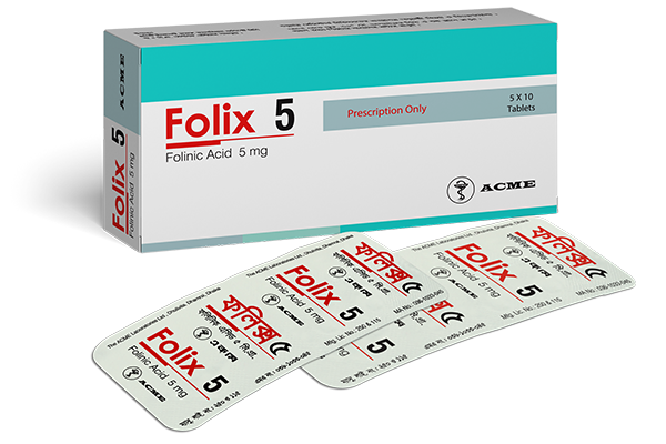 Folix 5: Each Tablet contains Folinic Acid 5 mg