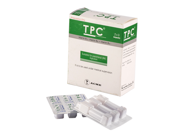 Injection : Thiamine Hydrochloride (Vit. B1) BP100 mg, Pyridoxine Hydrochloride (Vit. B6) BP 100 mg, Cyanocobalamin (Vit. B12) BP 1 mg.