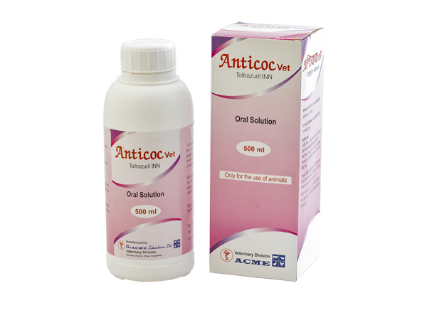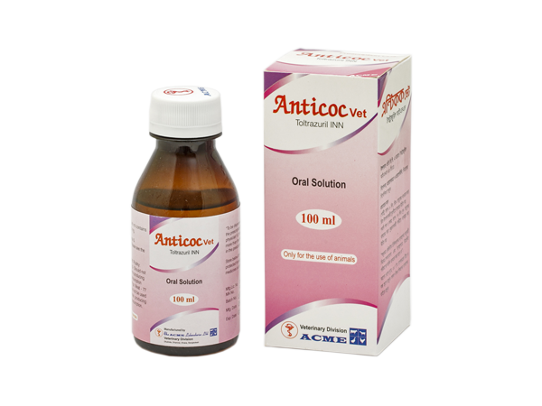 Anticoc Vet (Toltrazuril) is indicated for the prevention & treatment of coccidiosis in poultry, calves, sheep, goat and pigs.