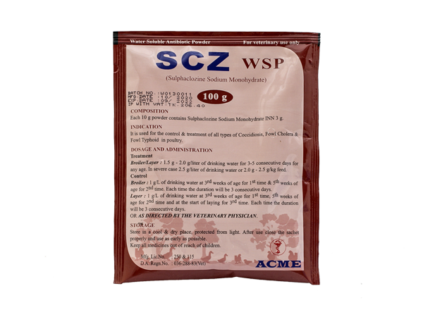 The powder is used for the control and treatment of all types of Coccidiosis, Fowl Cholera & Fowl Typhoid in poultry.